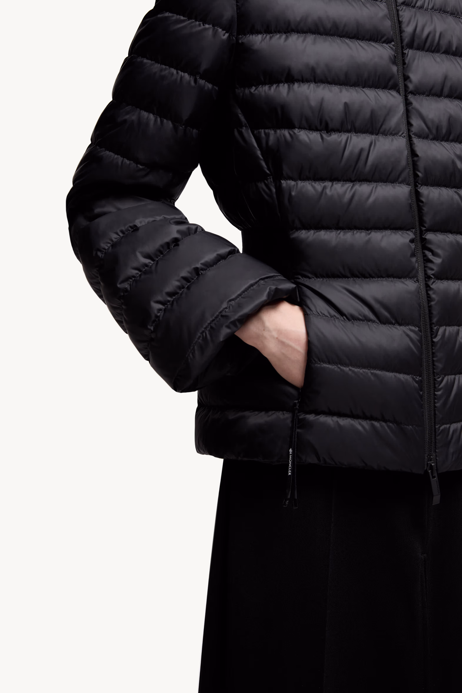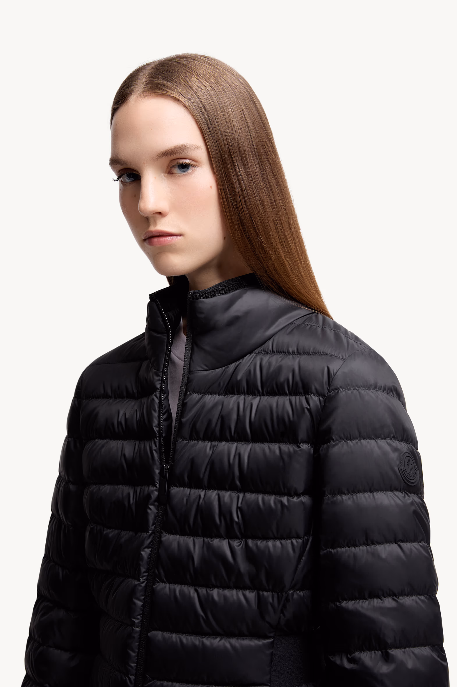 High-performance fabrics and a tailored silhouette come together in the Verrerie short down jacket for women.