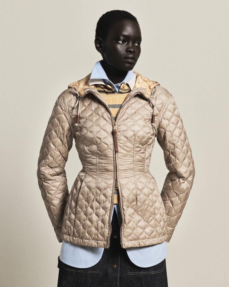 Quilting is reimagined throughout this season's outerwear through graphic patterning and vertical lines. Variations in length and silhouette bring an architectural edge, finished in a restrained, neutral palette.
