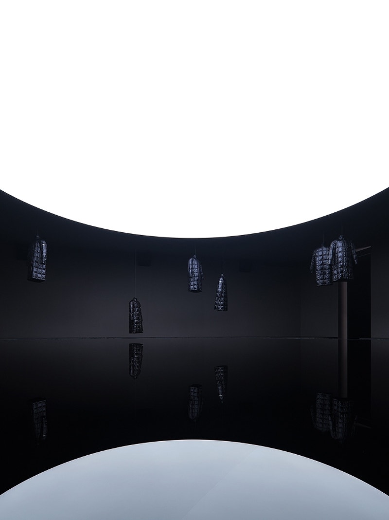 In collaboration with sculptor Richard Wilson RA, the space has designs suspended in the air, mirrored on the watery floor surface, creating an upside-down work of art titled, Looking Glass, 2024.