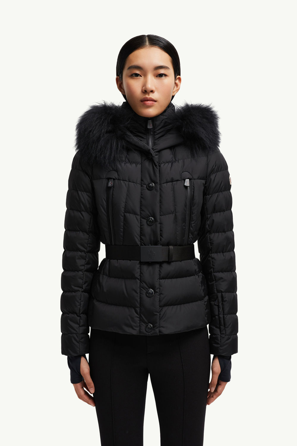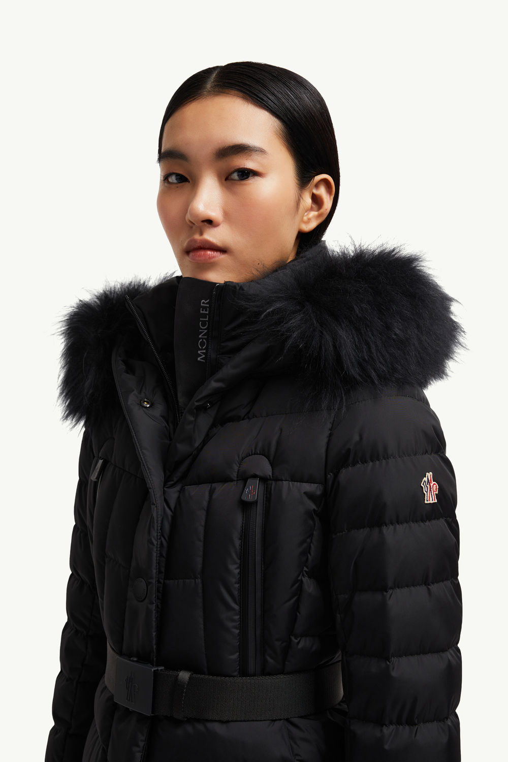 On the slopes or relaxing après ski, the Beverley down jacket adds the Moncler Grenoble stamp of style, adorned with a long-haired sheepskin trim.