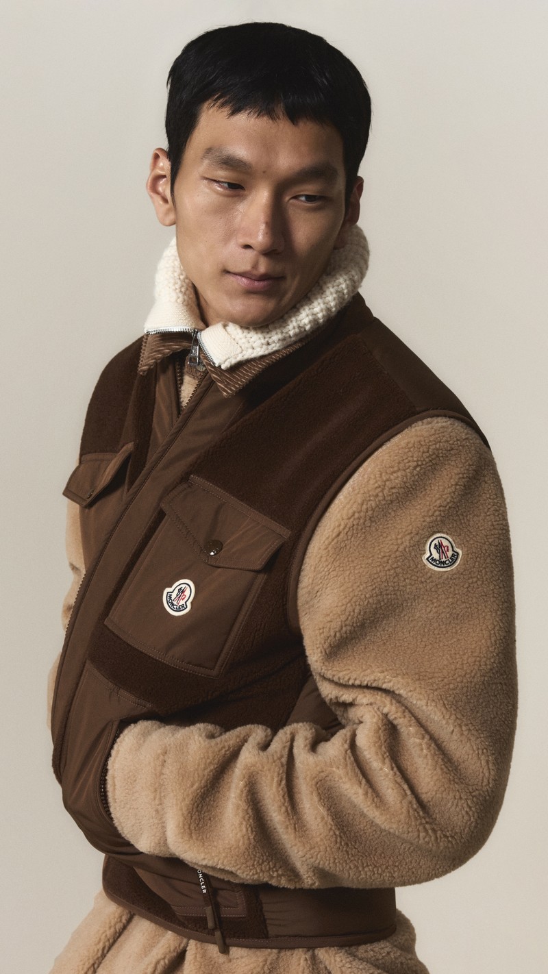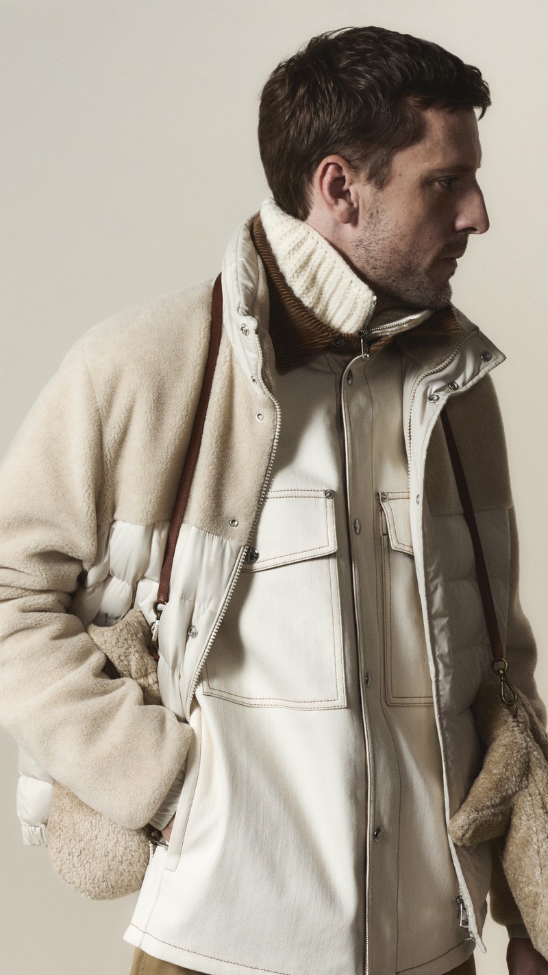 An interplay of textures, this zip-up sweatshirt pairs soft teddy with smooth nylon accents. A down-filled back enriches the design, allowing it to transition into outerwear when the weather permits.
